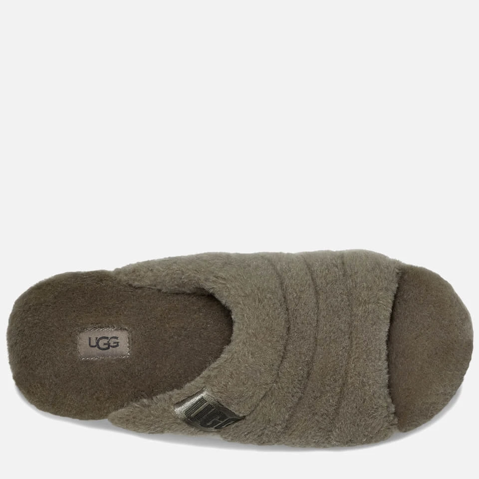UGG’s Fluff You slippers are made from the label’s snug UGGPlushâ„¢ wool-blend. Crowned with a ribbed strap, they have a sheepskin insole and a Treadlite by UGGâ„¢ outsole underfoot. They’re decked with a webbing patch that’s woven with signature lettering.