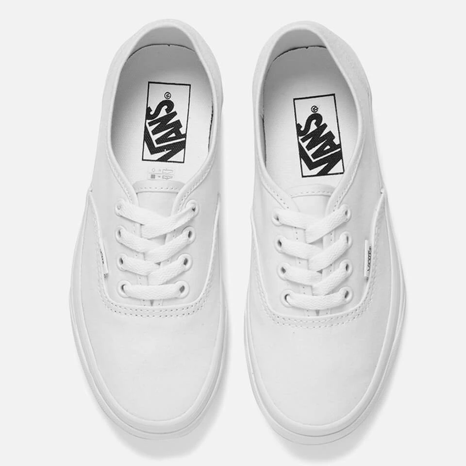 Vans’ all white Authentic trainers offer a fresh take on a retro classic. Crafted from cotton canvas, the low-top trainers from Vans feature signature branding on the counters and are set on durable waffle rubber soles.